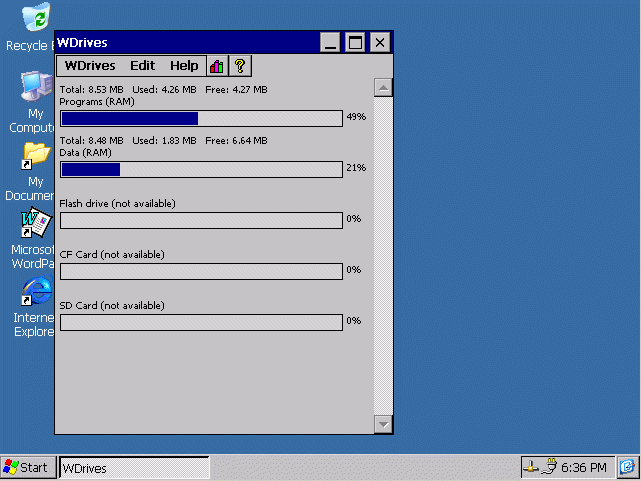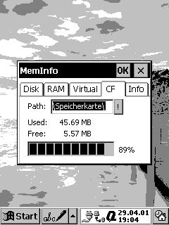 MemInfo was one of the first applications I wrote for a mobile device (Compaq Aero 1550 with Windows CE 2.11). The successor of MemInfo is MemInfo.NET and now supports the Pocket PC, CEPC and Smartphone platform! I also have written a desktop version of it long time ago. The desktop version is named WDrives. Some ideas of WDrives are realized in MemInfo.NET!